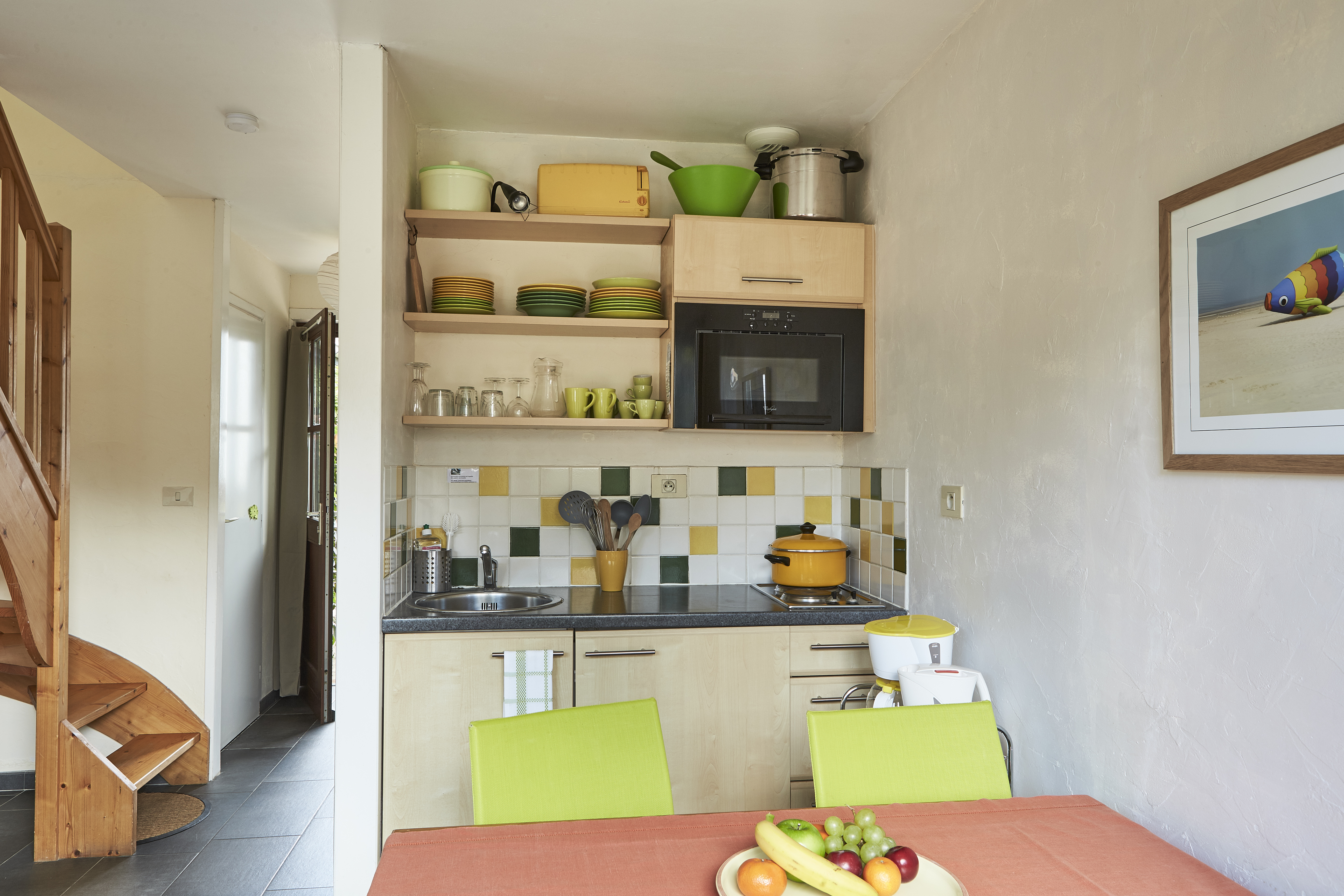 un séjour avec cuisine équipée - canapé-lit (2 pers), TV.
